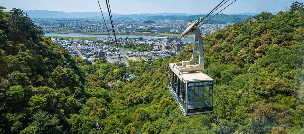 お店のポイント:織田信長が天下統一の拠点とした岐阜城がシンボルの金華山。山頂までは、いくつかのコースがありますが、わんちゃんもリード着用で登れる緩やかなコースもあります。のんびり登山も気持ちが良いのですが、「金華山ロープウェイ」で山頂まで空中散歩もおすすめです。